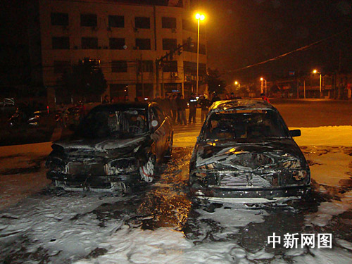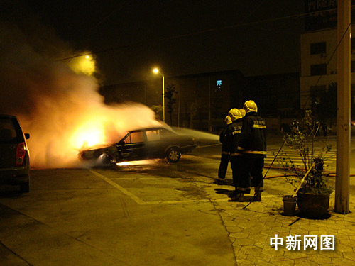 中新網(wǎng)常州十一月十二日電(陳佳 朱曉穎)12日凌晨兩點(diǎn)半,常州市武進(jìn)區(qū)夏城路與廣電路交叉路口發(fā)生了一起汽車自燃事故,其旁邊的一輛小轎車同時(shí)燃燒。常州消防武進(jìn)特勤中隊(duì)接警后迅速出動(dòng)1車、6人趕赴現(xiàn)場,經(jīng)過近半個(gè)小時(shí)的緊張?zhí)幹,火勢被成功撲滅,但兩輛車幾近報(bào)廢。