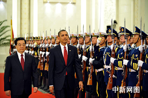 這是就職僅10個月的奧巴馬首次訪問中國。北大廳內(nèi),軍樂團(tuán)8點(diǎn)多即就位,再次認(rèn)真練習(xí)演奏著中美兩國國歌。鮮紅的地毯一側(cè),是密密麻麻的一百多名中外記者。在預(yù)計(jì)10分鐘的歡迎儀式中,奧巴馬將一睹中國人民解放軍三軍儀仗隊(duì)的風(fēng)范。