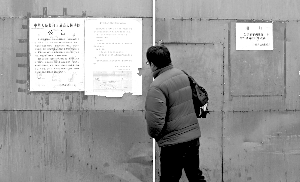 鐵門(mén)一側(cè)的墻上,貼著一張接待室遷址的通知,也已被撕得殘破不全。兩側(cè)搭建著10來(lái)個(gè)大大小小,形狀各異的塑料棚。一位衣衫襤褸的中年婦人從棚里彎腰走出來(lái),“法院(接訪室)已經(jīng)搬啦,周六就關(guān)門(mén)了!彼龔囊路道锾统鲆粡堎(gòu)物小票大小的通知,上面印著搬遷通知以及新址乘車(chē)路線圖,通知落款為最高人民法院立案一庭。