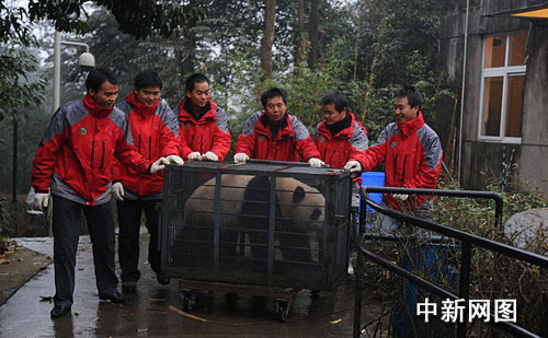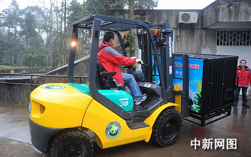 中新網(wǎng)成都11月27日電 (記者楊杰) 27日早上8時(shí)30分,在臥龍中國(guó)保護(hù)大熊貓研究中心白熊坪,工作人員一片忙碌,開(kāi)始將赴澳大利亞的大熊貓“網(wǎng)網(wǎng)”、“福妮”裝籠,并送上卡車整裝待發(fā)。10時(shí)整,歡送“網(wǎng)網(wǎng)”、“福妮”儀式舉行,中澳雙方動(dòng)物專家和相關(guān)官員出席。隨后,在家鄉(xiāng)人民祝福和不舍的目光中,車隊(duì)緩緩駛離雅安,前往成都雙流國(guó)際機(jī)場(chǎng)。