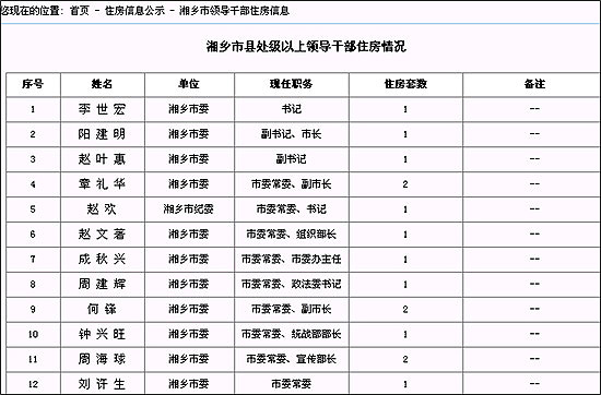 10月初,湘鄉(xiāng)市要求縣處級領(lǐng)導(dǎo)干部對住房情況進行申報,申報內(nèi)容包括自建房、參與單位集資建房、購買福利房、經(jīng)濟適用房、商品房、租房、出賣和出租房屋的情況,以及住房所在地址、產(chǎn)權(quán)所有人、建筑面積和使用面積、房屋造價或價格、付款數(shù)額、資金來源等。