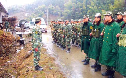 益陽至安化有130多公里,道路交通不便,天氣寒冷。在克服諸多不便之后,部隊于17時30分開進清塘鎮(zhèn)梧桐村。另一路由安化縣武警中隊派出的隊伍也趕到了現(xiàn)場。