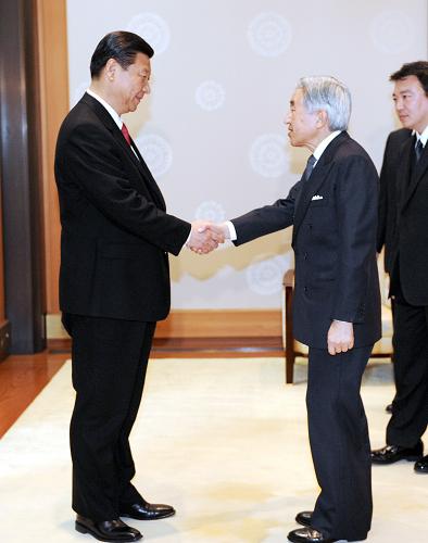 習(xí)近平向明仁天皇轉(zhuǎn)達(dá)了胡錦濤主席的誠(chéng)摯問(wèn)候和良好祝愿。他說(shuō),胡錦濤主席去年五月對(duì)日本進(jìn)行了成功的國(guó)事訪問(wèn),全面推進(jìn)了中日關(guān)系。陛下一直關(guān)心中日關(guān)系。一九九二年中日邦交正;苣曛H,天皇和皇后陛下首次訪問(wèn)中國(guó),給中國(guó)人民留下美好印象,在中日友好交往史上寫(xiě)下重要一頁(yè)。去年中國(guó)四川汶川發(fā)生特大地震后,陛下致電慰問(wèn),日本政府和各界人士給予寶貴支援,體現(xiàn)了陛下和日本人民對(duì)中國(guó)人民的友好情誼。