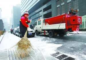 昨天凌晨飄落2010年第一場雪。從凌晨3時起,全市動員了兩萬名環(huán)衛(wèi)工人,連夜掃除積雪、施撒融雪劑,市區(qū)主要道路沒有因積雪而擁堵,全市交通暢通,市民出行無憂。