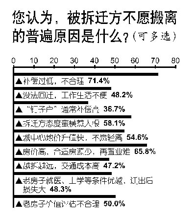 被拆遷方為何不愿搬離?71.4%的人首選“補(bǔ)償過(guò)低,不合理”