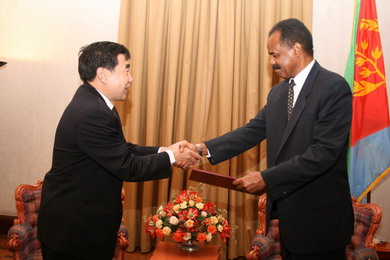 中新網(wǎng)2月23日電 據(jù)外交部網(wǎng)站消息,中國(guó)新任駐厄立特里亞大使李連生20日在厄總統(tǒng)府向伊薩亞斯總統(tǒng)遞交國(guó)書。