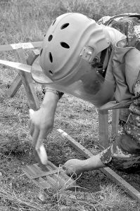 “我們每次要連續(xù)作業(yè)兩個(gè)小時(shí),每天要工作6個(gè)小時(shí)以上!睊呃鬃鳂I(yè)手姜海龍說,“雷場雜草叢生,悶熱無比,除了地雷的威脅外,我們還要時(shí)刻提防毒蛇、蝎子、毒蜂和跳蚤!