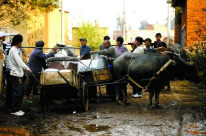 家住河?xùn)|村的朱家付每天趕著牛車,走個(gè)把小時(shí)來(lái)取水。自從打井隊(duì)在雙合村口打出水井后,朱家付結(jié)束了每天花兩小時(shí)去小壩子村取水的煩惱。他說(shuō),“那時(shí)候4個(gè)人來(lái)回6個(gè)小時(shí),用桶挑水!