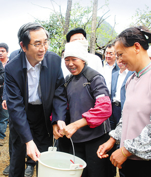 檢查指導(dǎo)期間,馬飚向隨行的自治區(qū)有關(guān)部門領(lǐng)導(dǎo)和百色市、那坡縣的負(fù)責(zé)同志傳達(dá)了溫家寶總理關(guān)于進(jìn)一步做好抗旱救災(zāi)工作的重要指示精神,部署當(dāng)前工作。他指出,今年春節(jié)期間,中共中央政治局常委、國(guó)務(wù)院總理溫家寶深入我區(qū)河池、百色等老區(qū)檢查指導(dǎo)抗旱救災(zāi)工作,對(duì)做好廣西抗旱救災(zāi)工作作出了重要指示。全國(guó)“兩會(huì)”剛結(jié)束,溫總理又親赴云南指導(dǎo)抗旱救災(zāi)工作,并在3月20日晚上主持召開了抗旱救災(zāi)工作座談會(huì),對(duì)云南、廣西、貴州三省區(qū)抗旱救災(zāi)工作提出明確要求。我們一定要按照溫總理的要求,進(jìn)一步做好抗旱救災(zāi)工作,不惜一切代價(jià)保證群眾生活用水,以實(shí)際行動(dòng)回報(bào)中央領(lǐng)導(dǎo)同志的關(guān)懷,讓黨中央放心,讓老百姓安心。