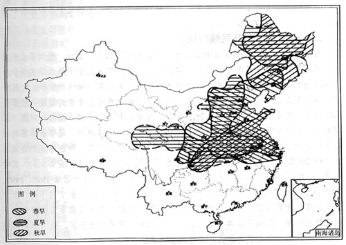 2001年,我國(guó)除華南、西南和河套等部分地區(qū)降水偏多外,其余大部分地區(qū)降水偏少,溫度偏高,大風(fēng)天氣頻繁,繼2000年后再次發(fā)生了大范圍的干旱?偟膩(lái)看,2001年長(zhǎng)江流域極其以北地區(qū)受旱范圍廣、持續(xù)時(shí)間廠、旱情嚴(yán)重,其他地區(qū)相對(duì)較輕。據(jù)有關(guān)部門統(tǒng)計(jì),全國(guó)累計(jì)受旱面積約3846萬(wàn)公頃,成災(zāi)面積2373.3萬(wàn)公頃,受災(zāi)面積是建國(guó)以來(lái)的第三位(次于2000年、1978年),成災(zāi)面積是建國(guó)以來(lái)的第二位(次于2000年),屬干旱嚴(yán)重年份。其時(shí)空分布特征為:華北、東北南部、西北東部地區(qū)、黃淮、江淮的干旱主要出現(xiàn)在3~6月,重慶、湖北等地的干旱主要出現(xiàn)在3~9月,東北北部的干旱主要出現(xiàn)在4月、6~11月,長(zhǎng)江中下游一帶主要出現(xiàn)在3~5月、7月、9月,四川盆地的干旱主要出現(xiàn)在3~5月、7月。受旱面積較大或旱情較重的有吉林、內(nèi)蒙古、山西、黑龍江、湖北、重慶、河北、四川、安徽、河南、山東、陜西、遼寧等省市區(qū)。