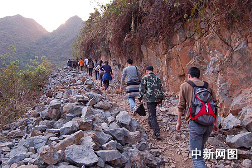 據(jù)了解,老人不惜以下跪來渴求的這條路,其實(shí)早在幾年前就開始修建。當(dāng)?shù)毓賳T介紹說,2006年政府補(bǔ)助6萬元修建弄懷這條2公里的山路,其余由群眾投工投勞修建,而弄懷屯因?yàn)橥獬鰟?wù)工較多,便按村民自治規(guī)定采取以資代勞辦法籌資,在施工到1公里時(shí),因與鄰?fù)团耐驮诰路走向上發(fā)生分歧而停工至今。