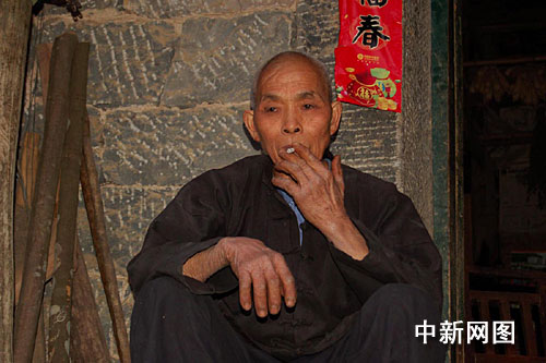 走進(jìn)弄懷屯,記者恰巧遇到一位拄著木棍、用背簍背水回家的老人。這位自稱出生于1938年的年過七旬的老人,名叫黃正貴,也是“下跪門”中的老人之一。這位老人最遠(yuǎn)到過東蘭縣城和附近的巴馬縣,不知道南寧(廣西首府)在哪里。一家八口人中,目前只有老伴兩個(gè)人在家,其他人外出打工。他說,自己已經(jīng)連續(xù)三天外出背水,每次背50斤,來回一個(gè)半小時(shí)。在這位老人的家里,看到了他幾天的成果,水缸已溢滿清水。