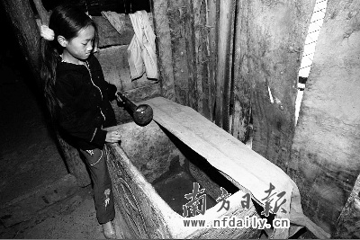 偏僻落后的牛角村,以種植畜養(yǎng)為主的原始經(jīng)濟(jì)遭遇強(qiáng)旱后,人均年收入已降至600多元。村里的一些年輕人本想外出打工,卻遭遇入不敷出的困境。楊昌毅就曾到深圳做過兩年保安,“每個(gè)月1200元工資,只能在當(dāng)?shù)仞B(yǎng)活我自己,我家里還有父母,兩個(gè)小孩和老婆,根本劃不來!毕駰畈氵@樣在牛角村里已經(jīng)算是能講普通話、會認(rèn)字的“文化人”。而記者在采訪中了解到,更多的牛角村民連自己名字也不會寫,普通話只能聽懂一半。“他們出去打工,只能重復(fù)我的命運(yùn)”,楊昌毅說,而且“每個(gè)星期都要下山挑水,沒有年輕人在家,老人怎么辦?” 南方日報(bào)特派記者謝慶裕