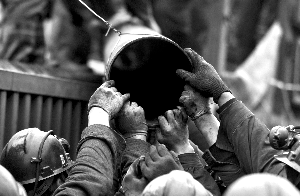 至昨晚記者發(fā)稿時(shí),離事故發(fā)生已有30多個(gè)小時(shí),王家?guī)X礦透水事故中的153名被困人員仍無(wú)音訊。據(jù)下井的救援人員說(shuō),水面距離礦口約1000米,積水已沒(méi)過(guò)巷頂。