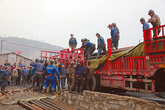 在救援現(xiàn)場記者看到,大批搶險物資已經(jīng)運抵煤礦風井口等待投入使用,搶險隊員正緊張地從車上卸下水泵、管道、電纜等設(shè)施并進行安裝,40多名醫(yī)護人員和20多輛救護車現(xiàn)場待命,指揮部工作人員一次又一次論證救援方案、修正正在實施的救援措施。