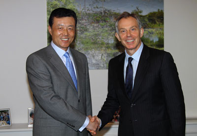 布萊爾熱烈歡迎劉大使來英履新。他說,他剛剛訪華歸來,中國之行令人印象深刻。他一直非常關(guān)注中國的發(fā)展,近年來幾乎每年都訪問中國,每次能切實感受到中國無時不在發(fā)生的新變化,看到一個發(fā)展勢頭強勁、始終充滿活力的中國。他認(rèn)為,世界新一代領(lǐng)導(dǎo)人加強對中國的認(rèn)識和了解至關(guān)重要。當(dāng)今世界日新月異,中西方應(yīng)該審慎對待雙方認(rèn)知差距的演進,努力保持和發(fā)展互利共贏的伙伴關(guān)系。他相信,無論英國大選結(jié)果如何,英國政府積極發(fā)展對華關(guān)系的政策不會改變,任何政黨都會為加強英中兩國間的交流與合作而努力。