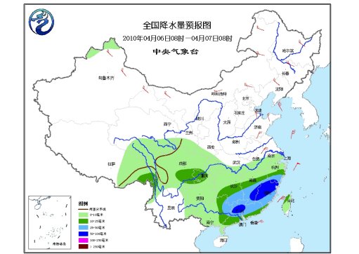 6日08時至7日08時,北疆北部、西藏東部、青海東南部、甘肅南部、川西高原等地有小雪(雨)或雨夾雪;陜西南部、湖北南部、江南、華南大部、西南地區(qū)東部、云南西北部和東部等地有小到中雨或陣雨,其中,江南南部及廣東中北部有大雨,局地暴雨;廣西東北部的部分地區(qū)有中到大雨。新疆北部、內(nèi)蒙古大部、西北地區(qū)北部、東北、黃淮東部等地有4~5級風。黃海南部海域、東海大部海域、臺灣海峽、臺灣以東洋面將有6~7級、陣風8級的東北風。北部灣將有霧,能見度不足10公里。