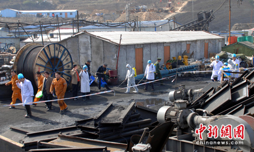 今日上午,記者在事故現(xiàn)場看到已經(jīng)有衛(wèi)生人員對事故現(xiàn)場進行消毒。同時,記者從事故現(xiàn)場一位救援人員了解到,井下仍然還有大量積水。