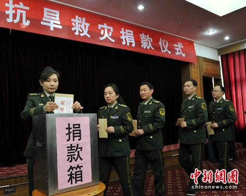 在今天舉行的現(xiàn)場捐贈儀式中,貴州消防總隊機關(guān)全體官兵現(xiàn)場捐款3.7萬余元。據(jù)統(tǒng)計,自抗旱以來,貴州各地消防官兵先后捐款捐物35萬余元,抗旱送水?dāng)?shù)56320噸,澆灌農(nóng)作物1000余畝,惠及群眾近300萬人。完