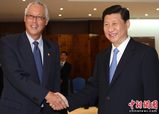 在會(huì)見吳作棟時(shí),習(xí)近平表示,中新關(guān)系發(fā)展順利。去年,胡錦濤主席對(duì)貴國(guó)成功的國(guó)事訪問為中新關(guān)系注入了強(qiáng)大動(dòng)力。新加坡是最早參與和支持中國(guó)對(duì)外開放的國(guó)家之一,中國(guó)在改革開放過程中借鑒了不少新加坡的有益經(jīng)驗(yàn)。中新蘇州工業(yè)園區(qū)開發(fā)建設(shè)16年來取得了令人矚目的成就。資政先生親自倡議建立的天津生態(tài)城項(xiàng)目啟動(dòng)一年多來進(jìn)展順利,成為中新合作的又一亮點(diǎn)。