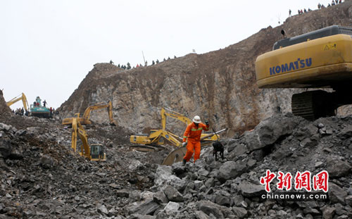 中新網(wǎng)峨眉樂都4月10日電(劉忠俊)10日14:55分,按照四川省公安消防總隊部署,成都市消防支隊政委馬昆帶著剛從沈陽培訓(xùn)結(jié)束的兩只搜救犬以及訓(xùn)導(dǎo)員等趕到峨眉山市樂都鎮(zhèn)順江采石場山體垮滑現(xiàn)場增援搜救工作。經(jīng)過2只搜救犬現(xiàn)場三次搜尋,在垮塌現(xiàn)場找到一臺失蹤汽車。
