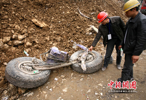 樂山市消防支隊支隊長夏銳告訴記者,兩只搜救犬經(jīng)過三次反復(fù)搜尋,最終,在2號通道入口前方的一片區(qū)域內(nèi),救援人員很快確定了一個可疑的被埋點。經(jīng)過現(xiàn)場挖掘,18時許,在搜救犬確定的區(qū)域內(nèi),搜救人員經(jīng)過清理,現(xiàn)場露出一臺汽車的半截貨箱,由于汽車下半截周圍全是巨石,必須將巨石處理后方能施救。