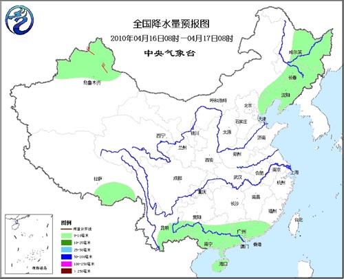 16日08時(shí)至17日08時(shí),新疆北部、東北等地有小到中雪(雨);華南及西藏東南部有小到中雨。