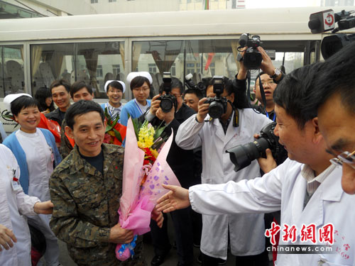 中新網(wǎng)4月16日 題:53名王家?guī)X獲救礦工今日出院 與山西醫(yī)護(hù)人員落淚惜別