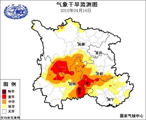 中新網(wǎng)4月16日電 中央氣象臺16日18時繼續(xù)發(fā)布干旱黃色預(yù)警:據(jù)監(jiān)測,云南中北部和東部、貴州西部和南部、廣西西北部、四川南部仍存在中度以上氣象干旱。未來三天,貴州西南部、廣西西北部、云南東部、四川南部有一般不足5毫米的降雨,廣西東部的局部地區(qū)有中到大雨。西南主要旱區(qū)大部地區(qū)氣象干旱仍將持續(xù)。