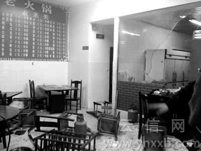 “砸!”一聲“令”下,幾十人拿著砍刀和鋼管,在火鍋店就開始到處亂砍!班枥锱纠病被疱伒甑牟AТ胺鬯樾缘袈洌【破、餐具接二連三被砸碎,正在沸騰的火鍋被掀翻在地,墻上、地上灑滿紅油。頓時(shí)店里一片混亂,客人、服務(wù)員紛紛沖進(jìn)廚房躲避。