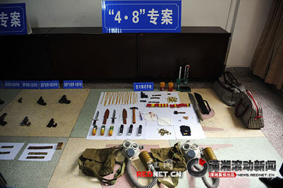 劉陽:拿了一把手槍,錘子、炸藥和催淚瓦斯。我是第一次見到真槍,我跟他說,你只要嚇唬嚇唬就可以了,我們只是為財不要開槍傷人。他說本來是打算進(jìn)去就直接打死一個人。