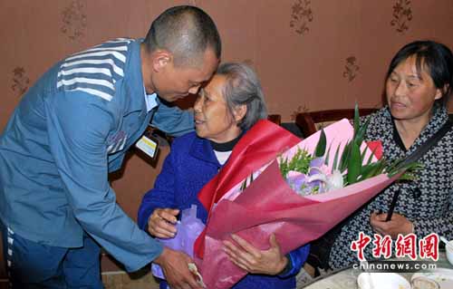 劉元奎扶著母親,牽著女兒,走進(jìn)了飯店的餐廳里,與家人共進(jìn)午餐。8年前,他因犯罪被判17年有期徒刑,此后便再也沒(méi)有見(jiàn)到過(guò)母親。母親用一雙視力不佳布滿皺紋的眼睛不停地打量著兒子。老母親說(shuō):“兒啊!我都過(guò)80了,今天以后還能不能再見(jiàn)到你喲?”母親的話如針尖刺在了劉元奎的心頭!皨!我一定好好改造,我剛剛減了3年刑,兩年后就可以出來(lái)了,你老人家一定要等我!”劉元奎委托監(jiān)獄民警買來(lái)一束康乃馨,把鮮花送到了母親手中說(shuō):媽媽,祝你母親節(jié)快樂(lè)!