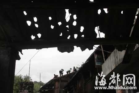 記者遇到的每一個延平區(qū) 翁坑村村民,都會伸出拳頭,形容那時下的冰雹比拳頭還大,“就像打過來一陣炮彈!弊蛱熘形,記者趕到南平市延平區(qū)峽陽鎮(zhèn),這個中國歷史文化名鎮(zhèn)失去了往昔的寧靜,在18日傍晚遭受特大冰雹襲擊后,該鎮(zhèn)小梅、杜溪、陳坍、葛大、翁坑、大埂、浪石等村1200多戶6000多村民嚴重受災(zāi),房屋瓦片被大面積擊穿,其中翁坑村、葛大村災(zāi)情最為嚴重。