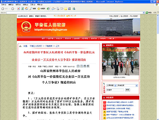 山西省朔州市平魯區(qū)人民政府對(duì)《山西平魯一價(jià)值數(shù)億元企業(yè)以一萬元賣給個(gè)人引爭(zhēng)議》報(bào)道的回應(yīng)