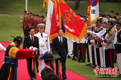 中新網(wǎng)首爾5月28日電 (記者 周兆軍)中國總理溫家寶28日在首爾同韓國總統(tǒng)李明博會談。雙方就朝鮮半島局勢坦誠、深入交換了看法。