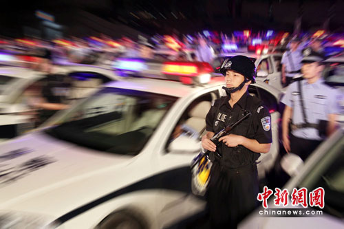 中新網(wǎng)杭州6月2日電(記者 趙曄嬌 通訊員 蕭公宣)2日晚,杭州市公安局蕭山分局在該區(qū)全面啟動(dòng)夏季治安“警燈閃亮•千警巡邏•世博護(hù)衛(wèi)”行動(dòng)。公安特警、刑偵民警、交通民警、治安民警、社區(qū)民警、警犬訓(xùn)導(dǎo)員(含警犬)嚴(yán)陣以待,深入推進(jìn)世博安保工作,強(qiáng)化夏季社會(huì)面治安巡防,營(yíng)造強(qiáng)大斗爭(zhēng)聲勢(shì)。