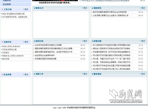 記者隨即登錄武漢市發(fā)改委政務(wù)公開網(wǎng)站。在該網(wǎng)站首頁記者發(fā)現(xiàn),除“來信選登”一欄開天窗以外,其它欄目的信息更新還比較及時?僧(dāng)記者點擊進(jìn)入子欄目時,就不是那么回事了。“常見問題匯總”、“表格下載”、“項目稽查”、“財政公開”等十幾個子欄目,均無任何內(nèi)容,只有大片空白。此外,在市民具體辦事的“業(yè)務(wù)專欄”欄目下,24個子欄目內(nèi)容驚人地一致,幾乎全是空白框架。