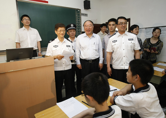 中新網(wǎng)6月12日電 國(guó)務(wù)委員、公安部部長(zhǎng)孟建柱6月10日至11日在重慶調(diào)研時(shí),專門到重慶市求精中學(xué)檢查指導(dǎo)校園安保工作。