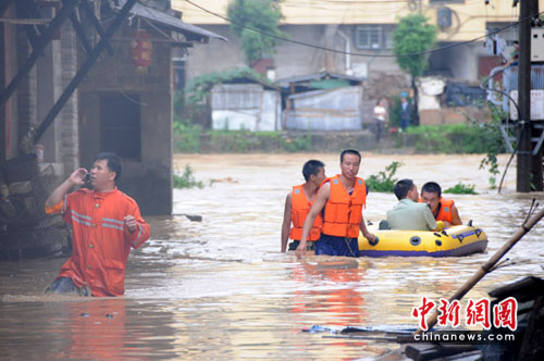 中新網(wǎng)南昌6月19日電(何柳斌 黃文吉 程金英)18日,特大暴雨致江西黎川縣山洪暴發(fā),縣城老街全部受淹,多個(gè)鄉(xiāng)鎮(zhèn)交通、通信中斷,超過8萬人受災(zāi),其中3萬人受重災(zāi),1.5萬余人被迫緊急轉(zhuǎn)移。