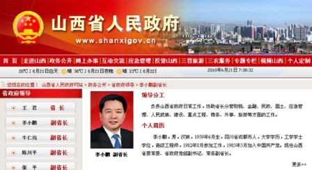 據(jù)山西省人民政府網(wǎng)站“省政府領(lǐng)導(dǎo)”欄目顯示,日前,李小鵬同志任山西省政府黨組副書記、常務(wù)副省長(zhǎng)職務(wù)。