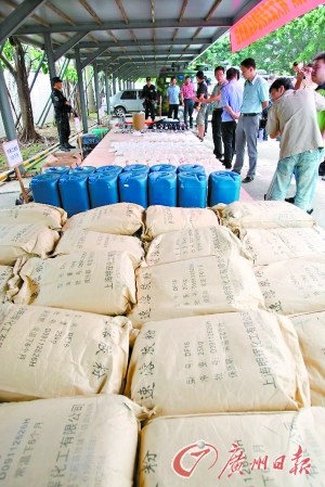據(jù)警方介紹,早在1999年潘某斌就因為非法持有毒品麻黃素,被內(nèi)蒙古警方抓獲,并獲刑10年。2003年被釋放后來到廣州,開始了更猖狂的販毒。為了掩人耳目,潘某斌開起了化工門市部,租了整棟樓,里面都放著化工原料,