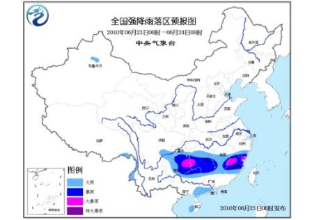 中新網(wǎng)6月23日電 中央氣象臺今日06時繼續(xù)發(fā)布暴雨藍色預警:預計6月23日08時到6月24日08時,四川盆地南部、重慶南部、貴州中東部、湖南大部、江西中南部、浙江南部、福建大部、廣西北部和東南部等地有大到暴雨,局地有大暴雨;上述部分地區(qū)并伴有短時雷雨大風等強對流天氣。另外,新疆天山北麓、西藏東南部、云南西部、廣東西南部和西北部、海南西部等地的局部地區(qū)有大雨。