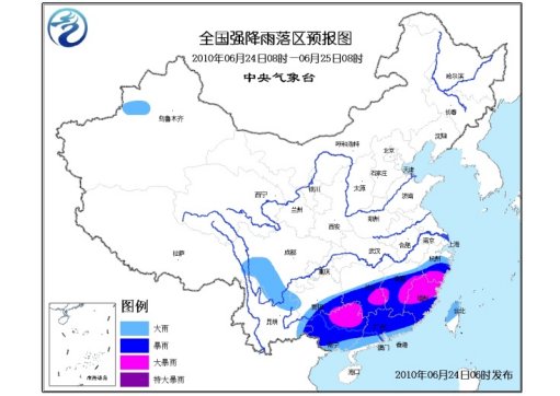 中新網(wǎng)6月24日電 中央氣象臺(tái)24日6時(shí)繼續(xù)發(fā)布暴雨黃色預(yù)警:預(yù)計(jì),6月24日8時(shí)到6月25日8時(shí),貴州南部、湖南中南部、江西大部、浙江中南部、福建、廣東大部、廣西等地有大到暴雨;廣西東北部、湖南東南部、江西中部偏東和中部偏西、浙江南部、福建中北部等地的部分地區(qū)有大暴雨。