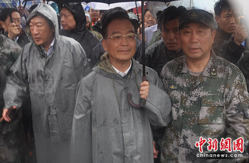 中新網(wǎng)撫州6月24日電(張見悅 何柳斌 劉占昆)24日,中共中央政治局常委、國務(wù)院總理溫家寶赴江西指導(dǎo)防汛抗災(zāi)工作。當(dāng)日上午,溫家寶總理冒雨深入重災(zāi)區(qū)撫州羅針鎮(zhèn),察看汛情、災(zāi)情,看望受災(zāi)群眾,慰問奮戰(zhàn)在抗洪搶險一線的解放軍、武警、公安消防官兵。
