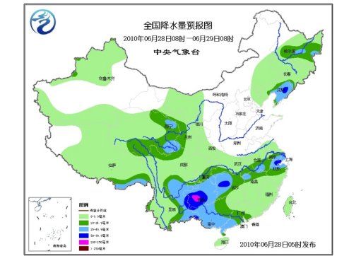 28日08時至29日08時,西藏大部、青海有小到中雨或雨夾雪,新疆西北部和南部山區(qū)、甘肅大部、寧夏、陜西南部、內(nèi)蒙古西部偏西地區(qū)和東南部、東北地區(qū)大部、河北東北部、江淮、江漢、江南、華南大部以及西南地區(qū)有小到中雨或陣雨,其中,西藏東南部、青海東部、甘肅西南部、黑龍江中部偏東地區(qū)、遼寧中東部、川西高原南部、云南東部、貴州大部、重慶東南部、湖南西部、廣西西部和南部、廣東西南部、江西北部、蘇皖南部、上海、浙江北部等地的部分地區(qū)有大雨、局地暴雨,貴州西部的局部地區(qū)有大暴雨;上述部分地區(qū)并伴有短時雷雨大風(fēng)等強(qiáng)對流天氣。新疆西部和北部、甘肅西部、內(nèi)蒙古中東部等地有4~6級風(fēng),其中,新疆山口地區(qū)風(fēng)力可達(dá)8~9級。東海大部海域有5~6級西南風(fēng)。