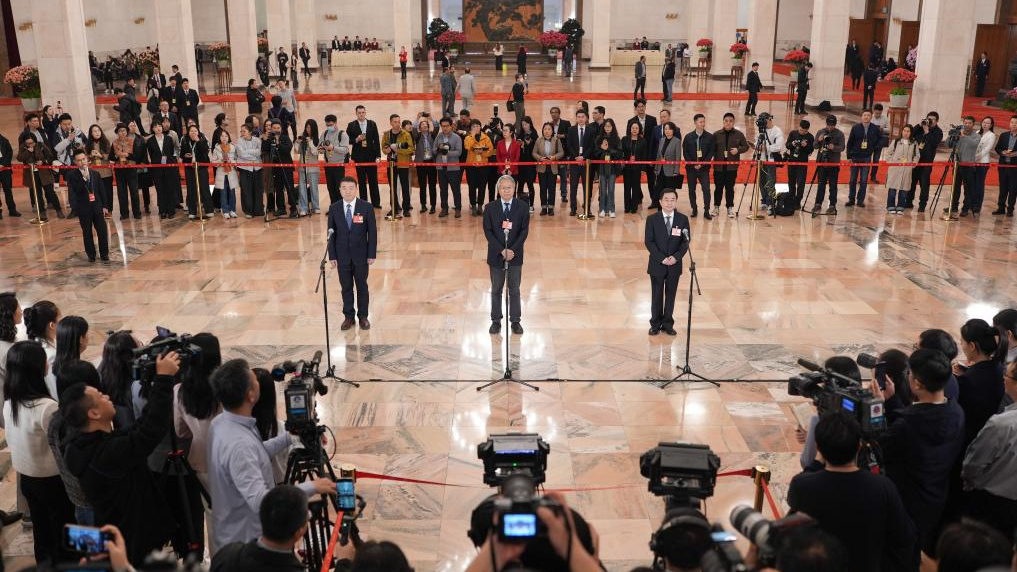 3月11日下午閉幕會后,在人民大會堂北大廳舉行十四屆全國人大三次會議第三場“部長通道”集中采訪活動,邀請部分列席會議的國務(wù)院有關(guān)部委主要負責人接受采訪。