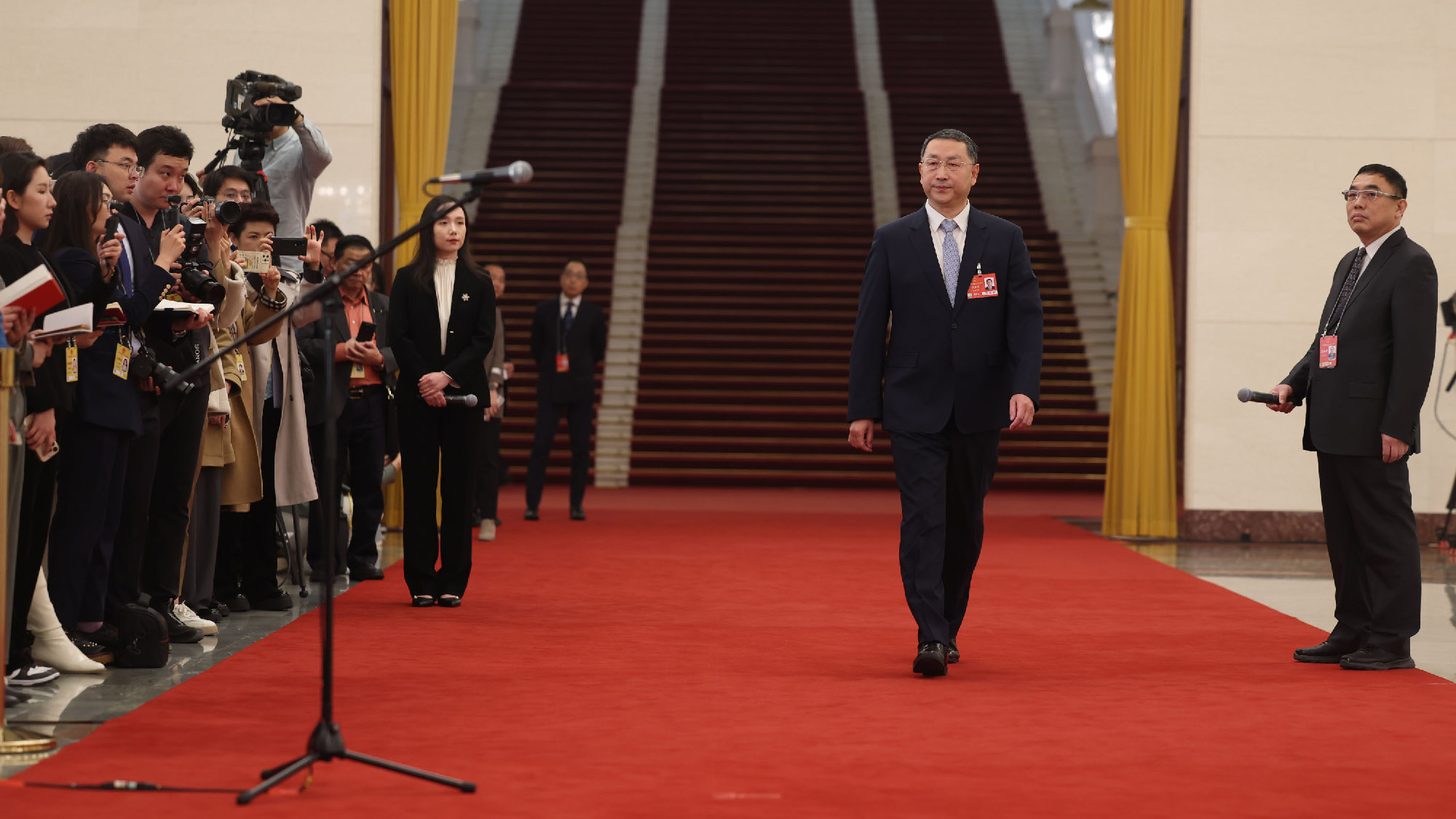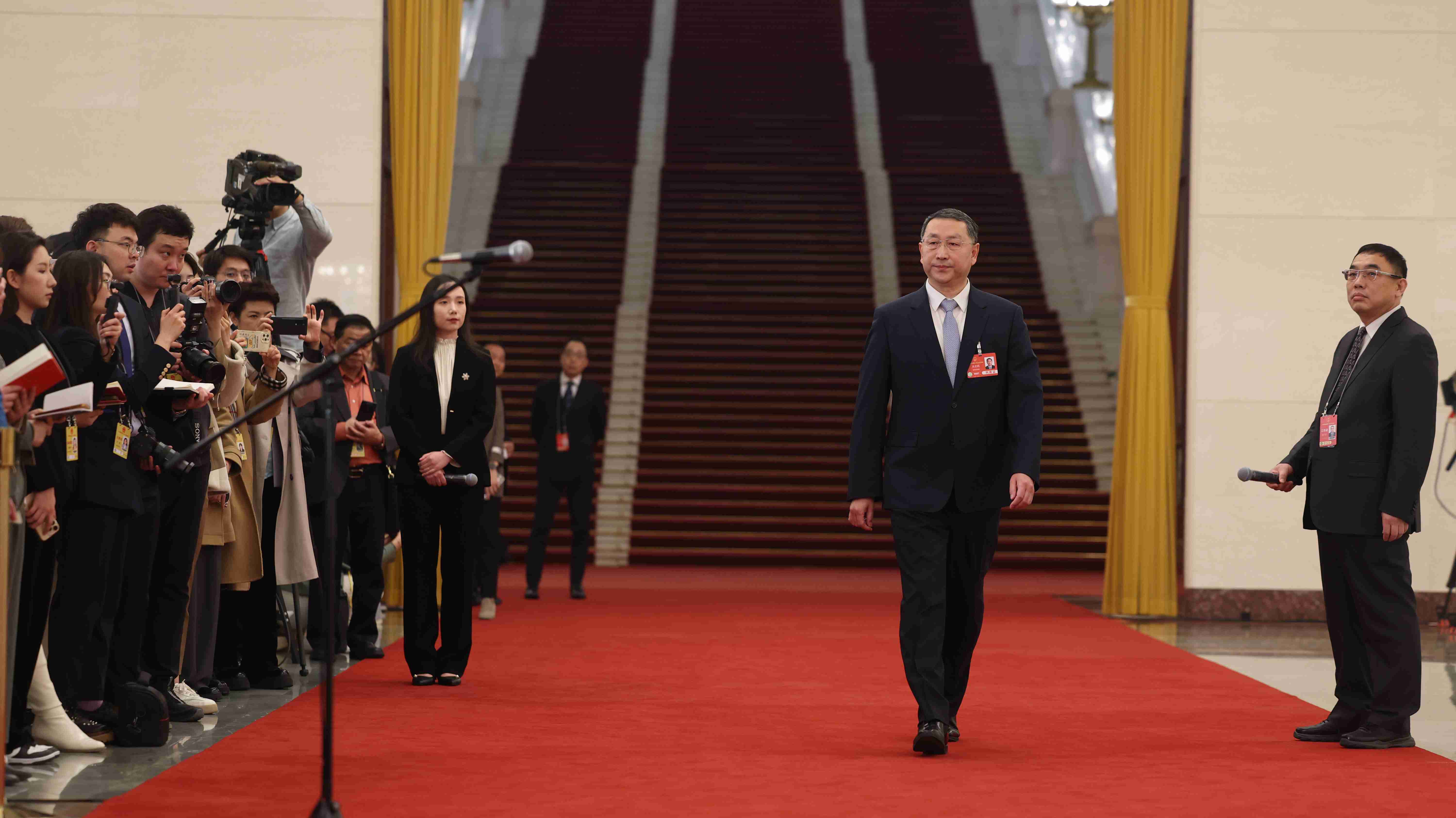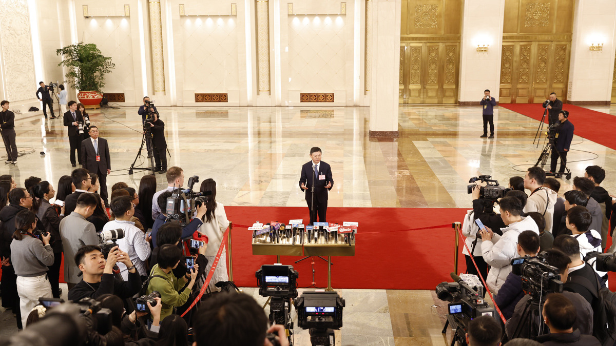 3月8日上午第二次全體會議后,在人民大會堂北大廳舉行十四屆全國人大三次會議第二場“部長通道”集中采訪活動,邀請部分列席會議的國務(wù)院有關(guān)部委主要負責人接受采訪。