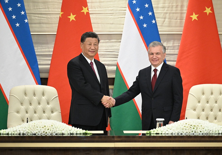 | 習(xí)近平于當(dāng)?shù)貢r(shí)間15日應(yīng)邀同烏茲別克斯坦總統(tǒng)米爾濟(jì)約耶夫共同種下一棵橡樹(shù),以此象征中烏友誼枝繁葉茂、生生不息的延續(xù)。 |