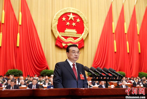 3月5日,十二屆全國人大四次會議在北京人民大會堂開幕。國務(wù)院總理李克強(qiáng)作政府工作報告。中新社記者 劉震 攝
