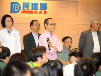 7日晚約300名雷曼苦主出席民建聯(lián)舉行的申訴大會(huì),并商討特區(qū)政府提出的銀行回購(gòu)債券方案,希望可以尋找理性的方法維護(hù)雷曼苦主的權(quán)益。民建聯(lián)副主席劉江華、立法會(huì)議員陳鑒林、李慧瓊、黃定光出席申訴大會(huì)。